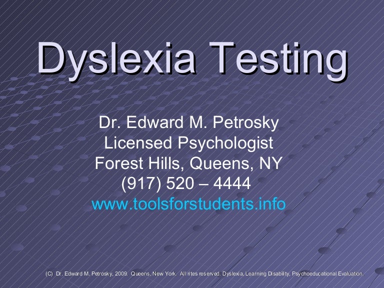Areas of expertise include testing for dyslexia reading disability written language disorder dyscalculia and attention deficit disorder. Educational evaluations neuropsychological testing ADHD testing testing for dyslexia and child custody. Dont Wait Start Today.